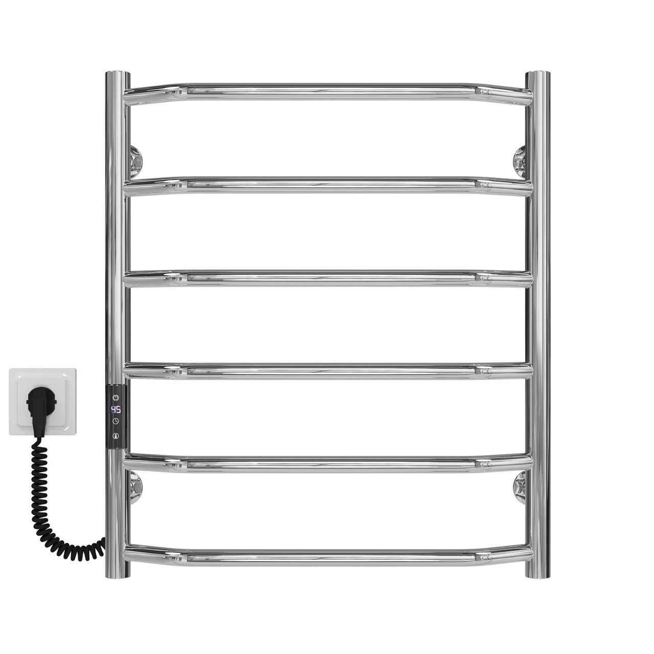Переваги сушарки для рушників: Виготовлений із неіржавкої сталі марки AISI 201 Безпечна температура поверхні сушіння Високий ступінь ізоляції виробу Низьке споживання електроенергії Можливість встановити приховане під’єднання Електричний сушарка для рушників призначена для сушіння рушників та інших текстильних виробів у домашніх умовах. Він виготовлений із полірованої неіржавкої сталі, яка забезпечує максимально ефективне тепловіддання. Ця модель матиме чудовий вигляд в інтер’єрі сучасної ванної кімнати завдяки чітким лініям прямих перемичок, з додатковим місцем для рушників у формі полиці. У корпус сушарки для рушників вмонтований електричний нагрівальний елемент. Для зручності експлуатації на стійці сушарки для рушників встановлений термоконтролер.