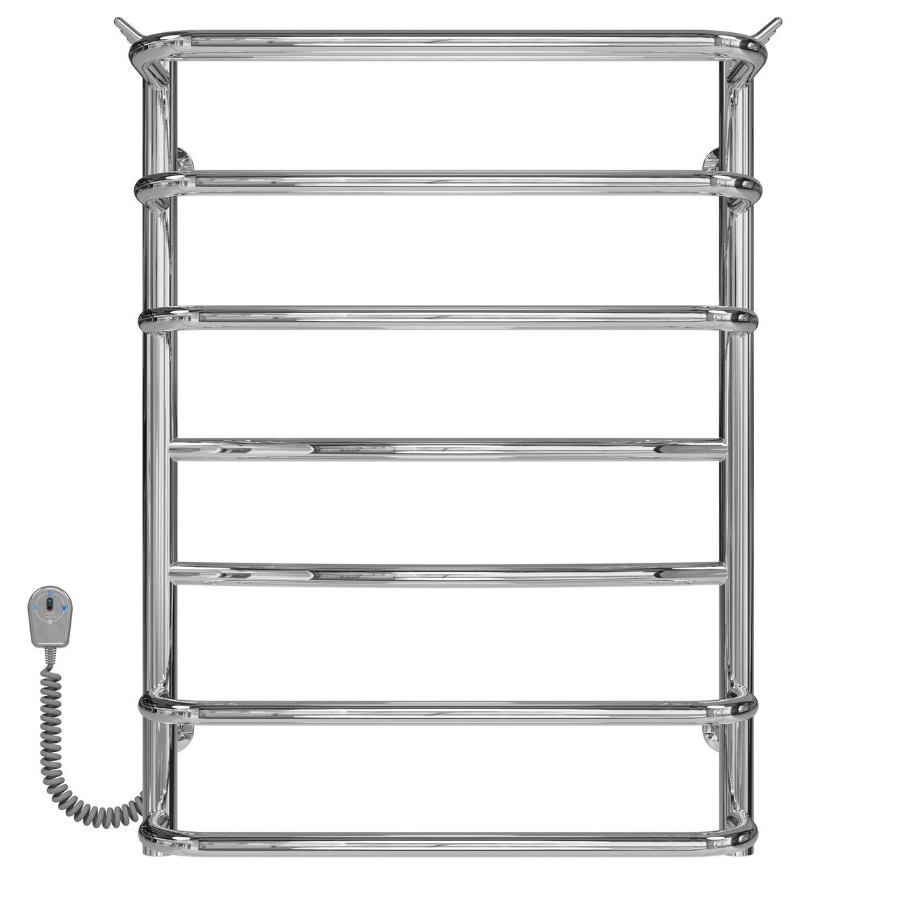 Переваги сушарки для рушників: Виготовлений із неіржавкої сталі марки AISI 201 Безпечна температура поверхні сушіння Висока ступінь ізоляції виробу Низьке споживання електроенергії Можливість встановити приховане під’єднання Електричний сушарка для рушників призначена для сушіння рушників та інших текстильних виробів у домашніх умовах. Він виготовлений із полірованої неіржавкої сталі, яка забезпечує максимально ефективне тепловіддання. Ця модель матиме чудовий вигляд в інтер’єрі сучасної ванної кімнати завдяки чітким лініям прямих перемичок, з додатковим місцем для рушників у формі полиці. У корпус сушарки для рушників вмонтований електричний нагрівальний елемент. Для зручності експлуатації на стійці сушарки для рушників встановлений термоконтролер.