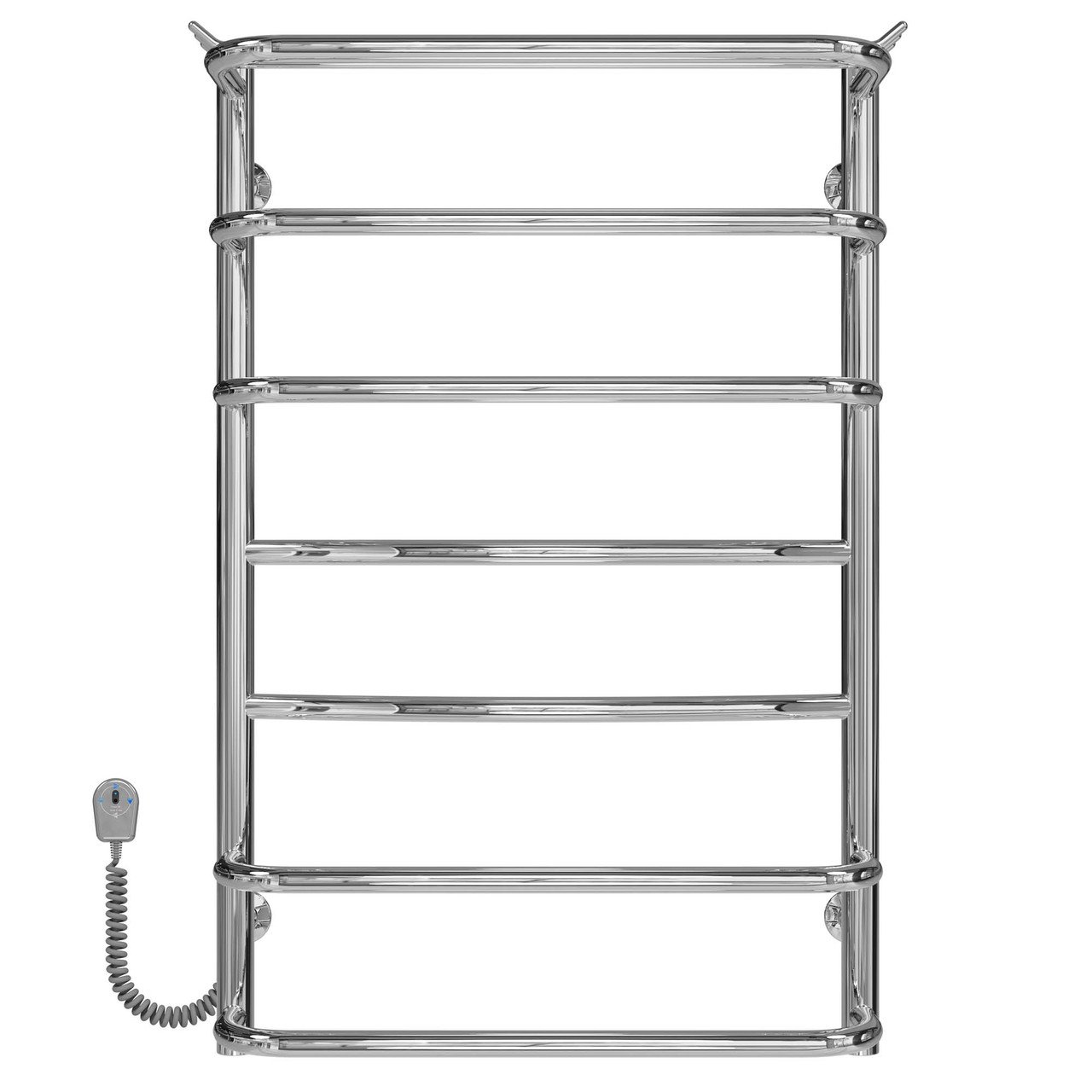 Переваги сушарки для рушників: Виготовлений із неіржавкої сталі марки AISI 201 Безпечна температура поверхні сушіння Висока ступінь ізоляції виробу Низьке споживання електроенергії Можливість встановити приховане під’єднання Електричний сушарка для рушників призначена для сушіння рушників та інших текстильних виробів у домашніх умовах. Він виготовлений із полірованої неіржавкої сталі, яка забезпечує максимально ефективне тепловіддання. Ця модель матиме чудовий вигляд в інтер’єрі сучасної ванної кімнати завдяки чітким лініям прямих перемичок, з додатковим місцем для рушників у формі полиці. У корпус сушарки для рушників вмонтований електричний нагрівальний елемент. Для зручності експлуатації на стійці сушарки для рушників встановлений термоконтролер.